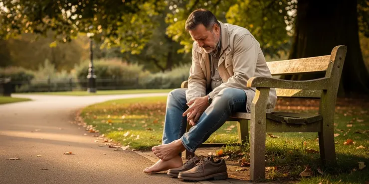 Before you start walking, wait for your foot to feel normal and warm again. This helps your blood move well and stops more hurting.