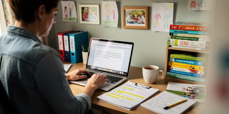 Parents can use pictures, talk with teachers, and use simple books or apps to help their children. Working as a team makes learning fun and better for children with SEND.