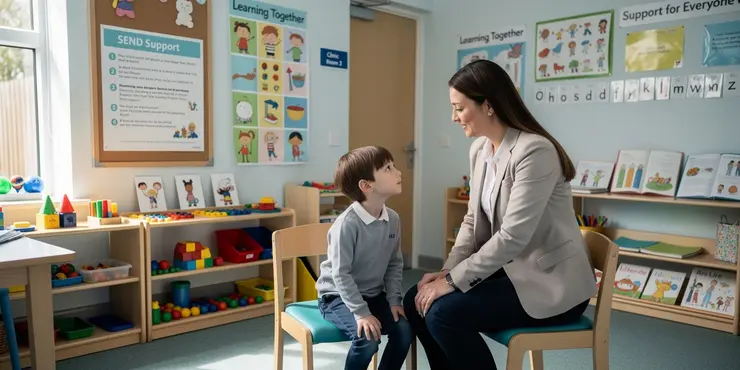 SEND stands for Special Educational Needs and Disabilities. This means some children need extra help at school. In the UK, schools make sure they are places where all children, including those with SEND, can learn happily together. Schools try to be kind, understanding, and helpful. They help with different kinds of learning, movement, or even feelings and emotions that might be tricky for some children.