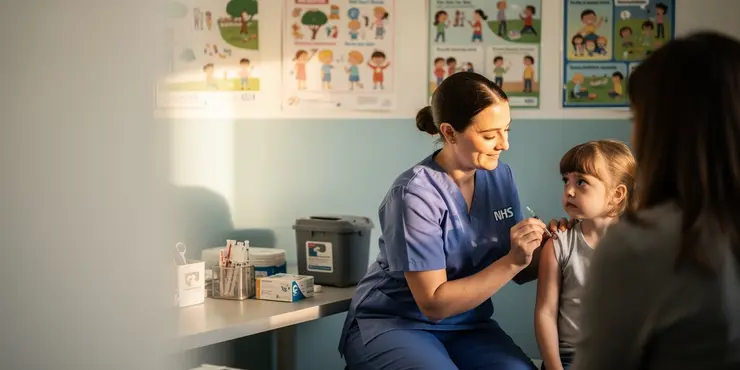 The MMR vaccine protects against measles, mumps, and rubella. It's important for stopping these diseases. In the UK, children get this vaccine twice, first at about 12 months old and again before starting school. Vaccines help protect not just the person who gets them but also others around them by stopping the spread of the disease.